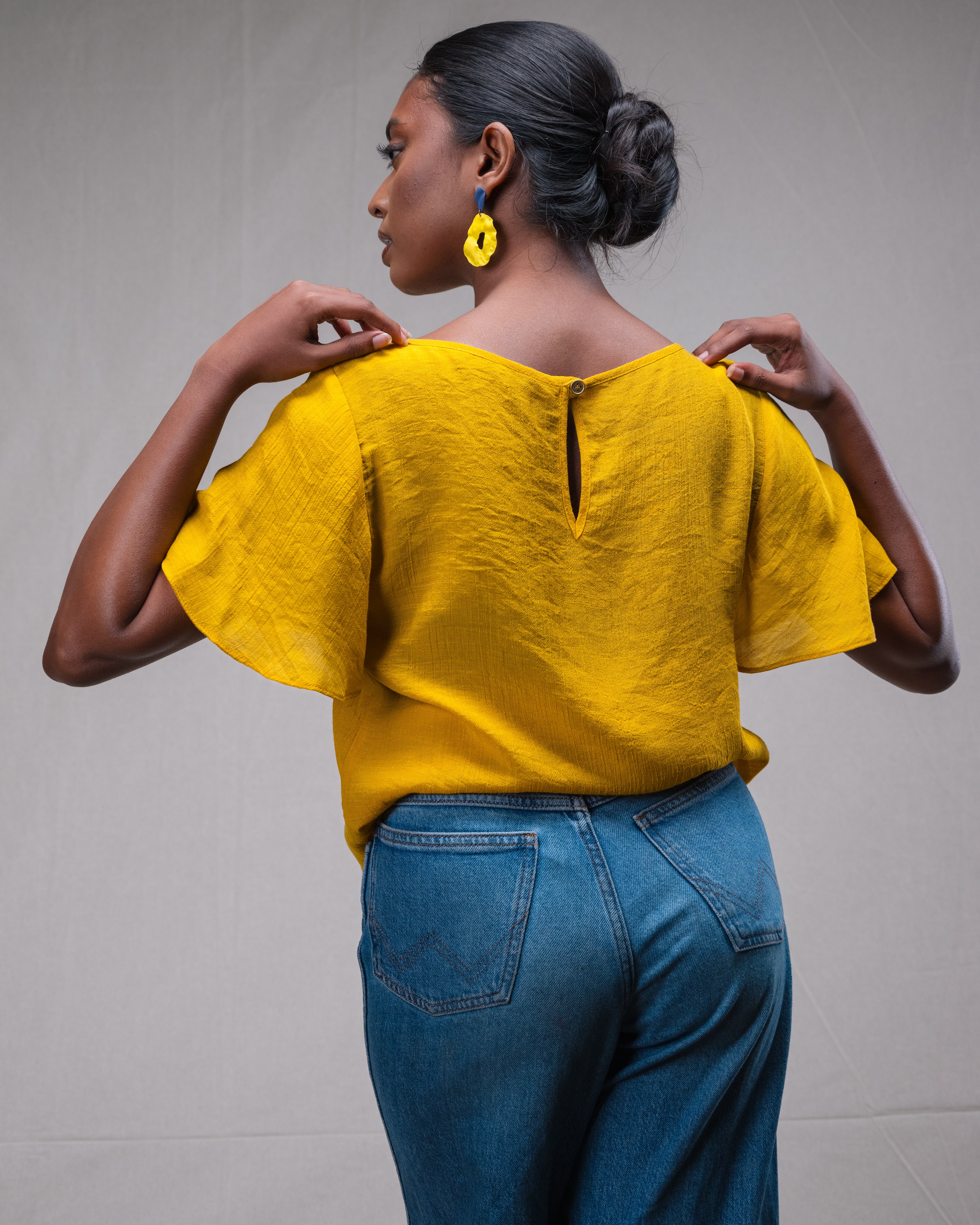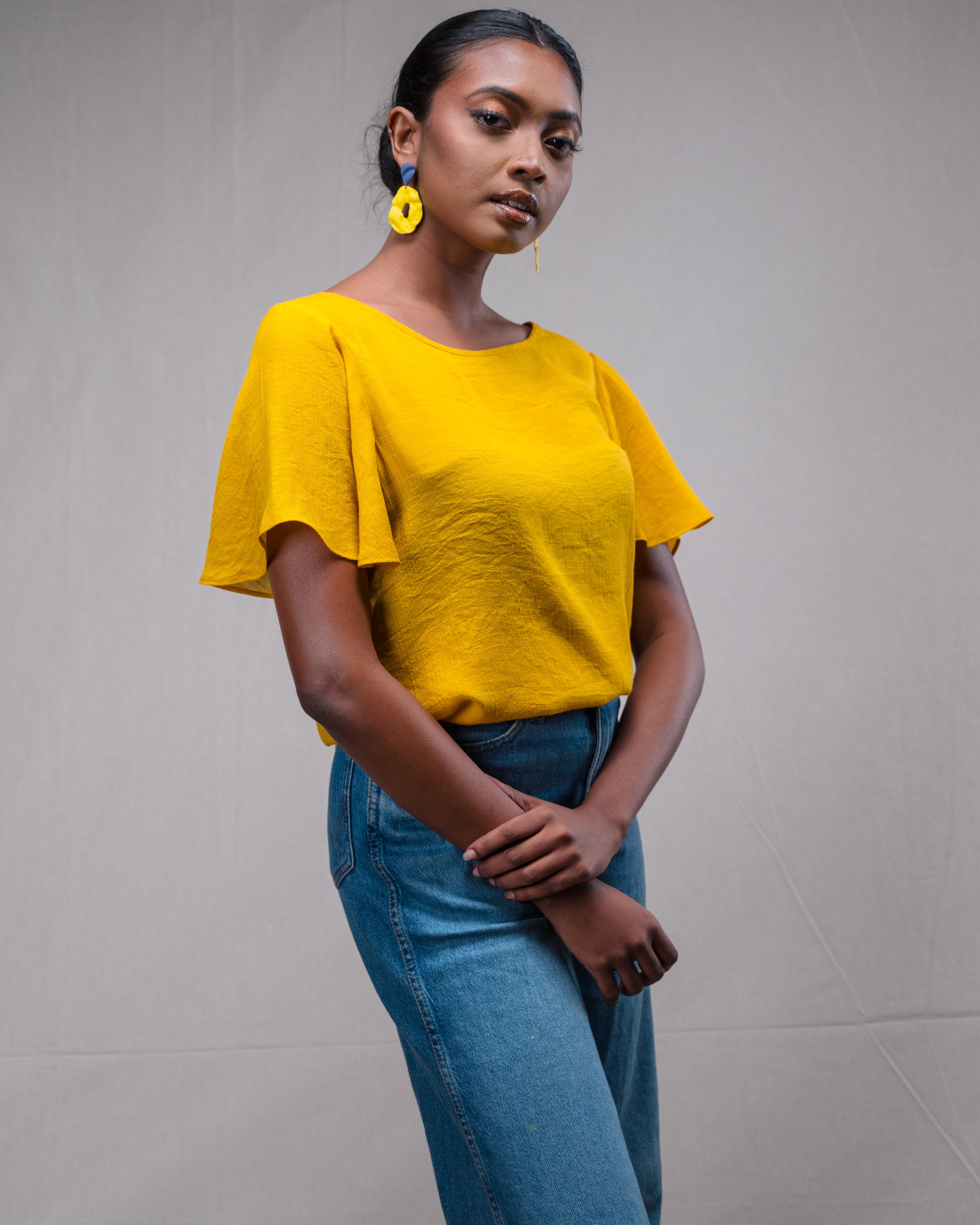 Yellow Crystal top is a Basic solid colour top and with a short length Kimono sleeve which adds uniqueness to your day-to-day wearable, blends well with denims and casual wear skirts.