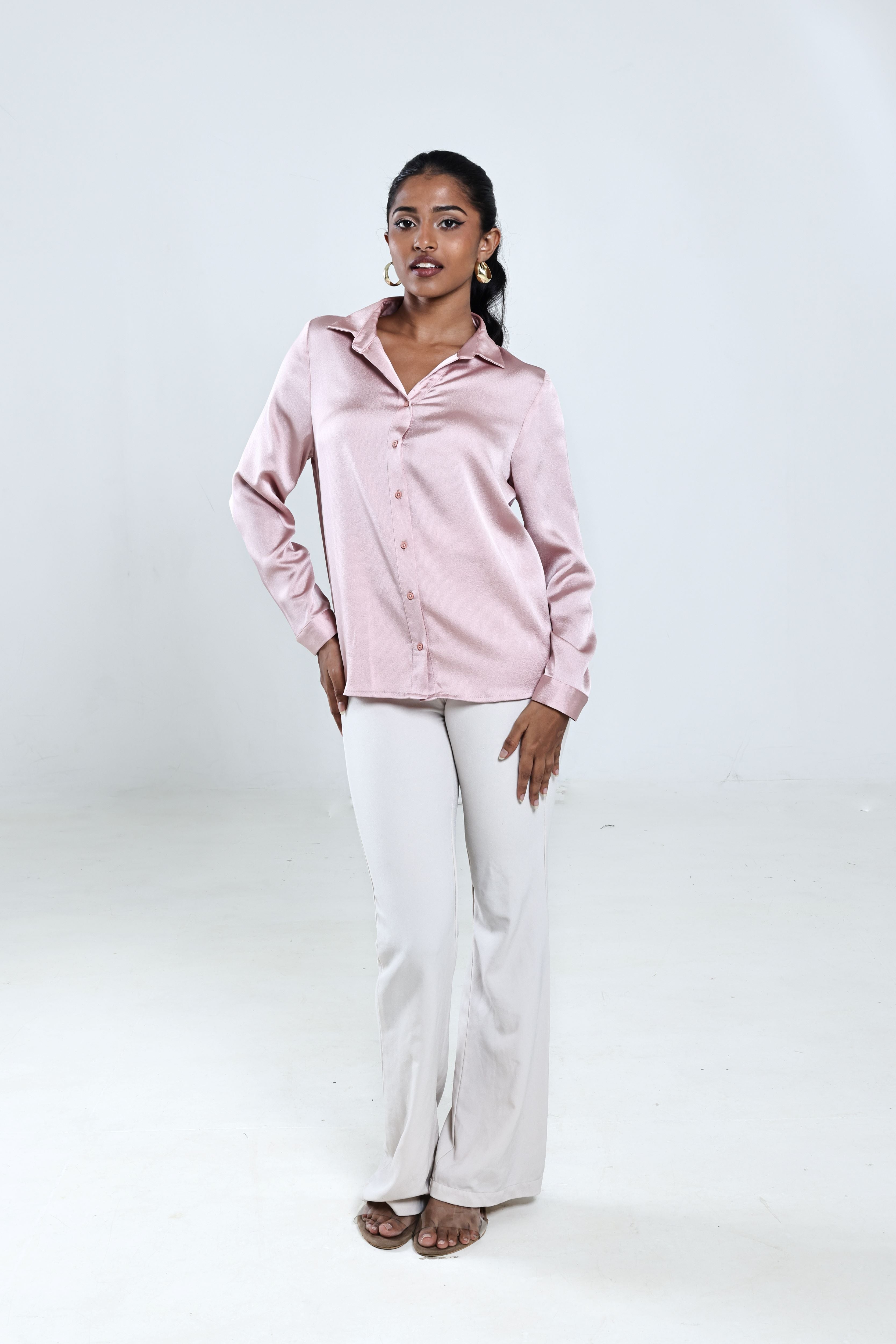 "Indulge in sophisticated luxury with our Peony Mist Shirt. Crafted from a lustrous, soft-touch satin fabric in a delicate rose pink hue, this shirt offers a beautiful drape and subtle sheen. Its classic collared design and button-front make it a versatile piece, perfect for elevating your office attire, adding polish to an evening look, or bringing a touch of glamour to your casual ensemble.