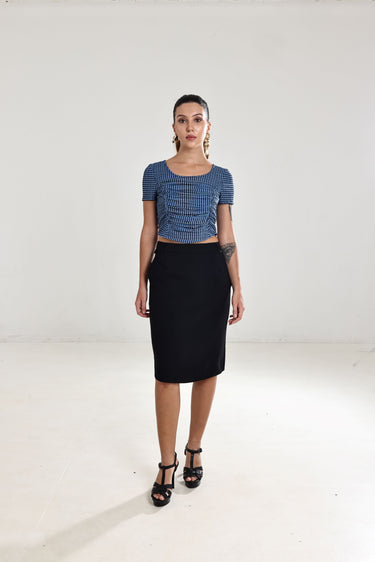 "Elevate your everyday style with this trendy blue and white checkered crop top. Designed with a flattering square neckline and short ruched sleeves, this top effortlessly combines comfort and sophistication. The gathered front detail enhances the fit, while the lightweight, breathable fabric makes it perfect for all-day wear.