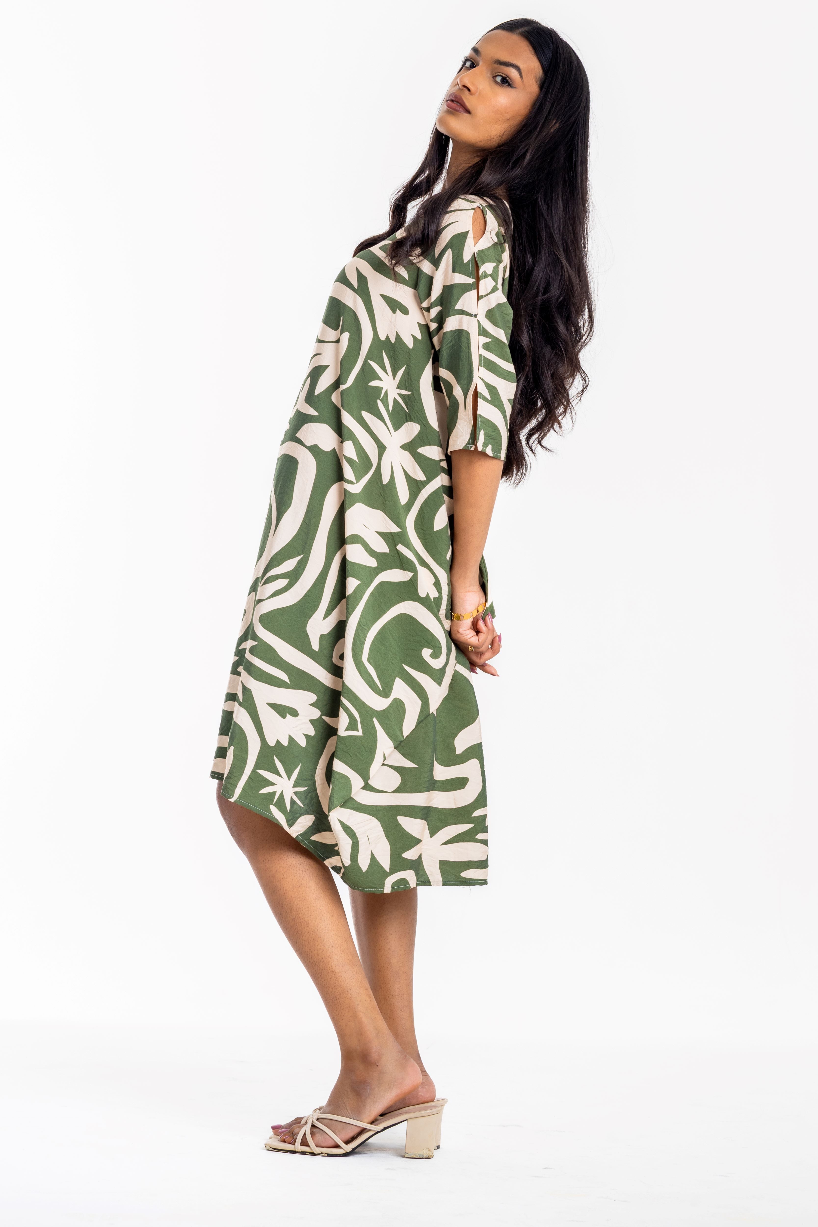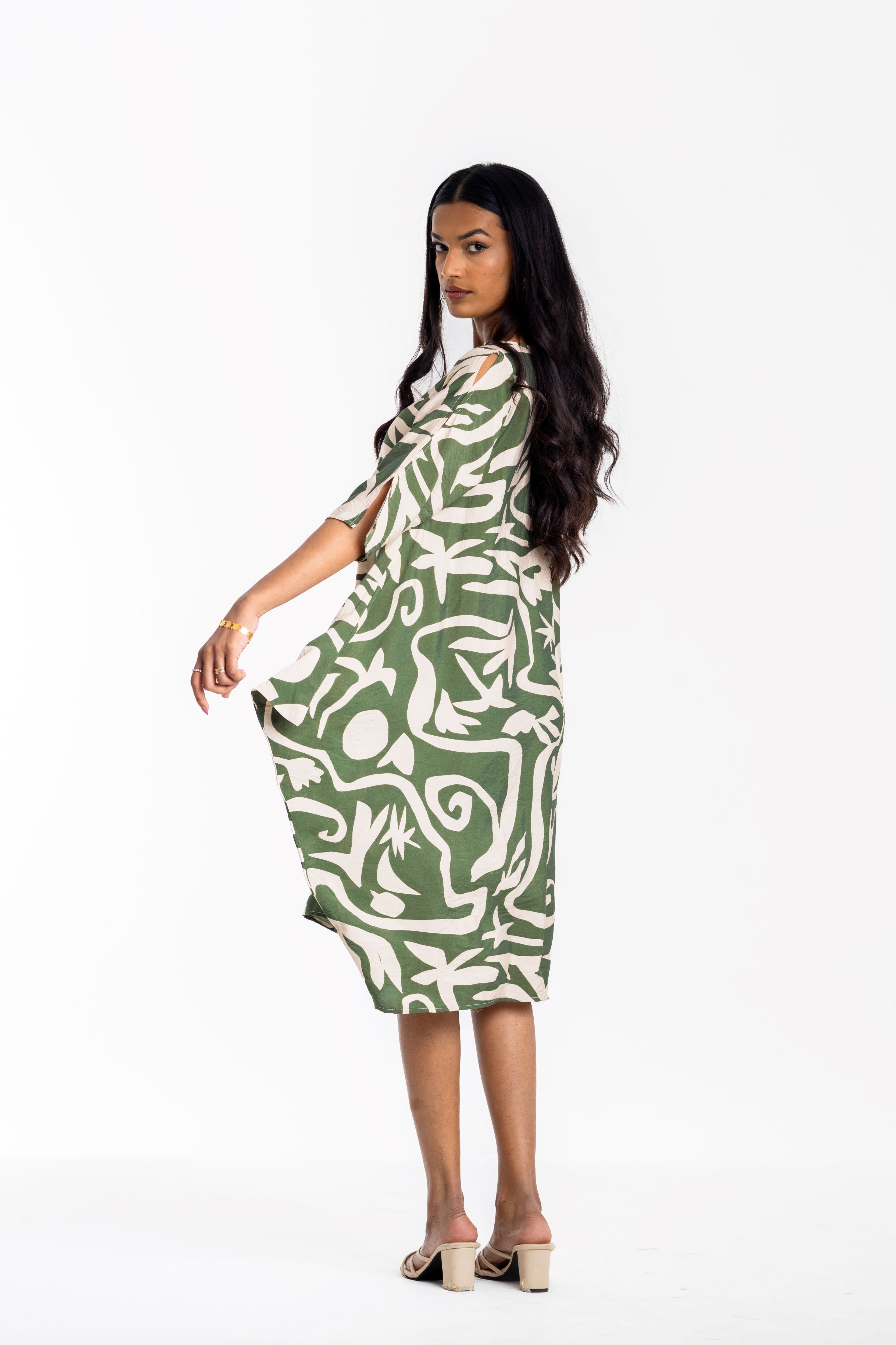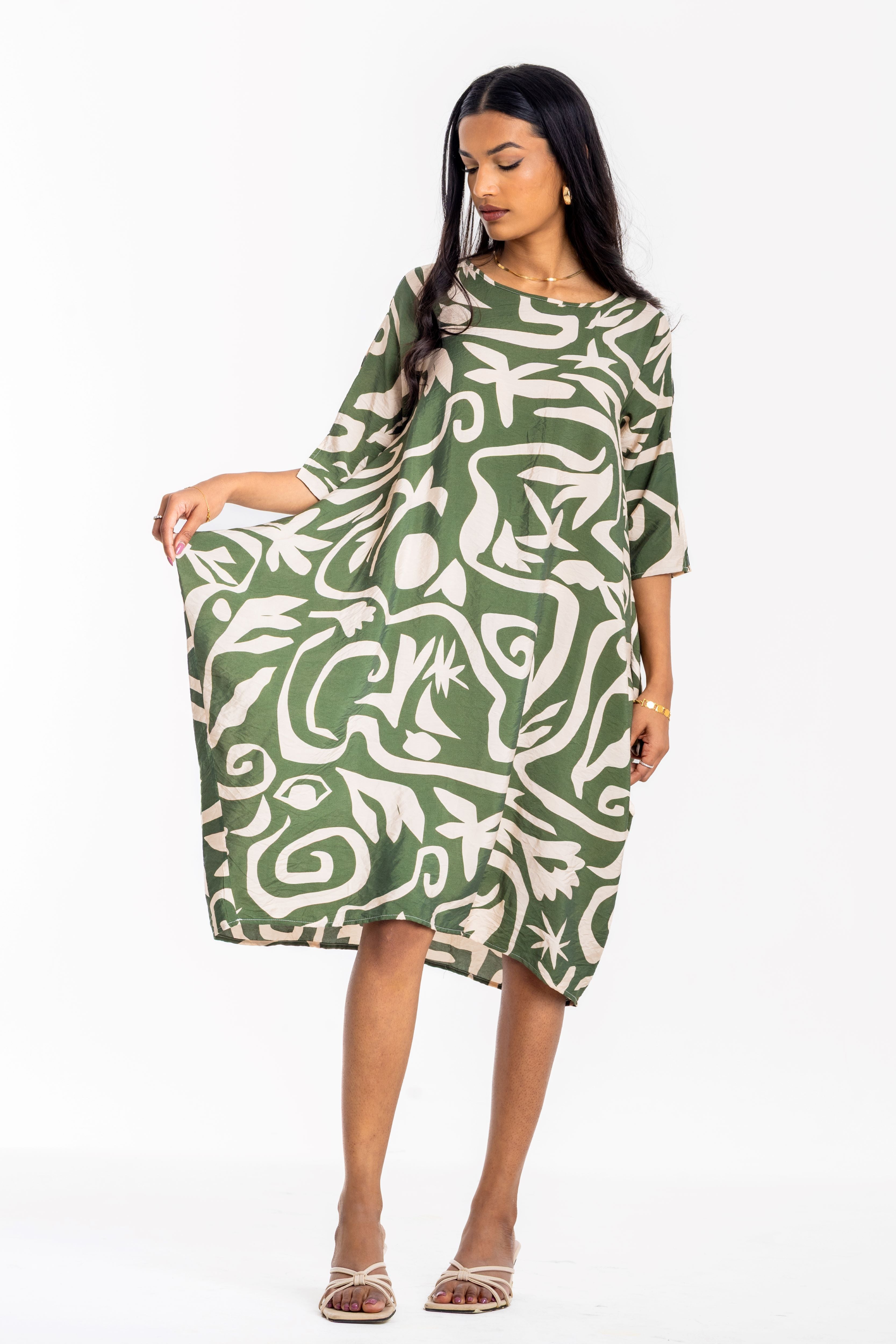 Embrace relaxed elegance with the Nature Haze Kaftan Dress. This distinctive piece features a stunning oversized silhouette that tapers slightly at the hem, creating a dramatic and flattering 'cocoon' or 'bubble' shape. It's the ultimate blend of comfort and avant-garde style.