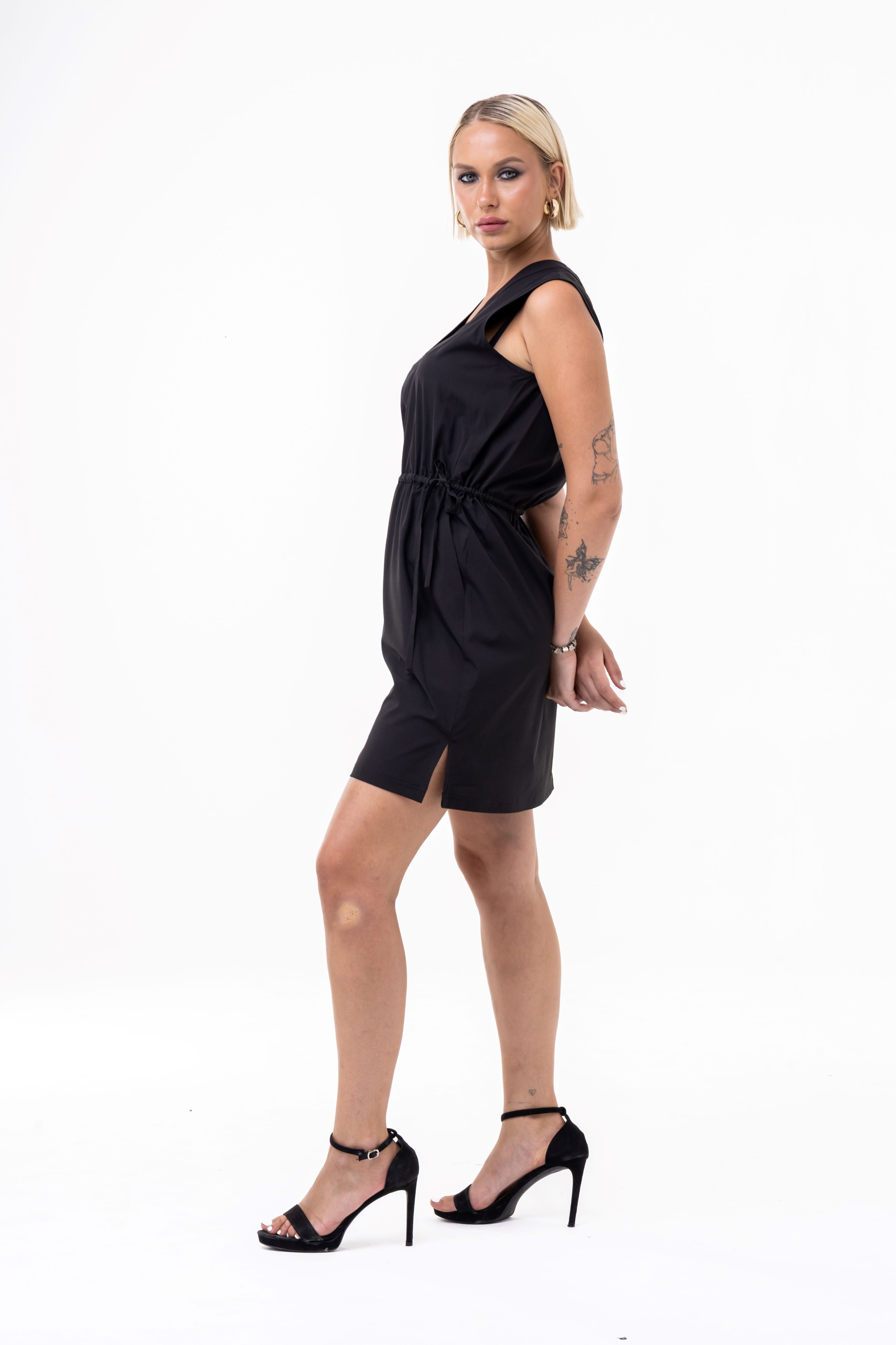 Meet your new favourite "everywhere" dress. Combining a relaxed shift silhouette with adjustable waist detailing, this sleeveless mini dress offers a perfect balance of comfort and definition. The clean V-neckline and smooth finish make it a versatile staple that works just as well with sneakers as it does with stilettos.